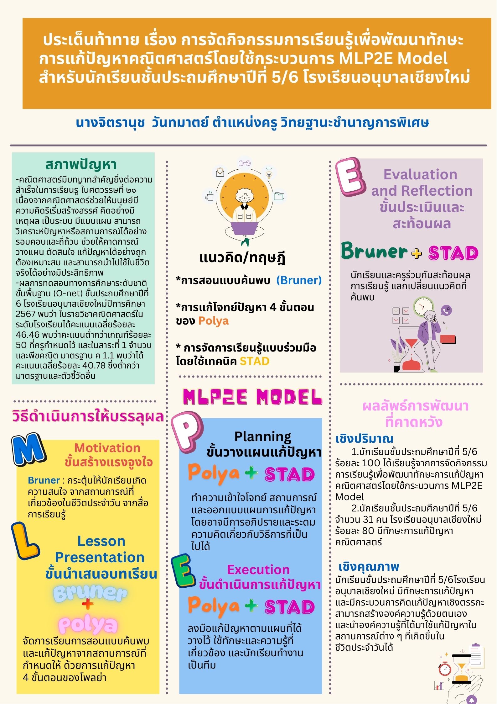 การจัดกิจกรรมการเรียนรู้เพื่อพัฒนาทักษะการแก้ปัญหาคณิตศาสตร์โดยใช้กระบวนการ MLP2E MODEL ข้อตกลงในการพัฒนางานที่เสนอเป็นประเด็นท้าทาย วิธีดำเนินการ วันที่: 04/12/2025 11:36