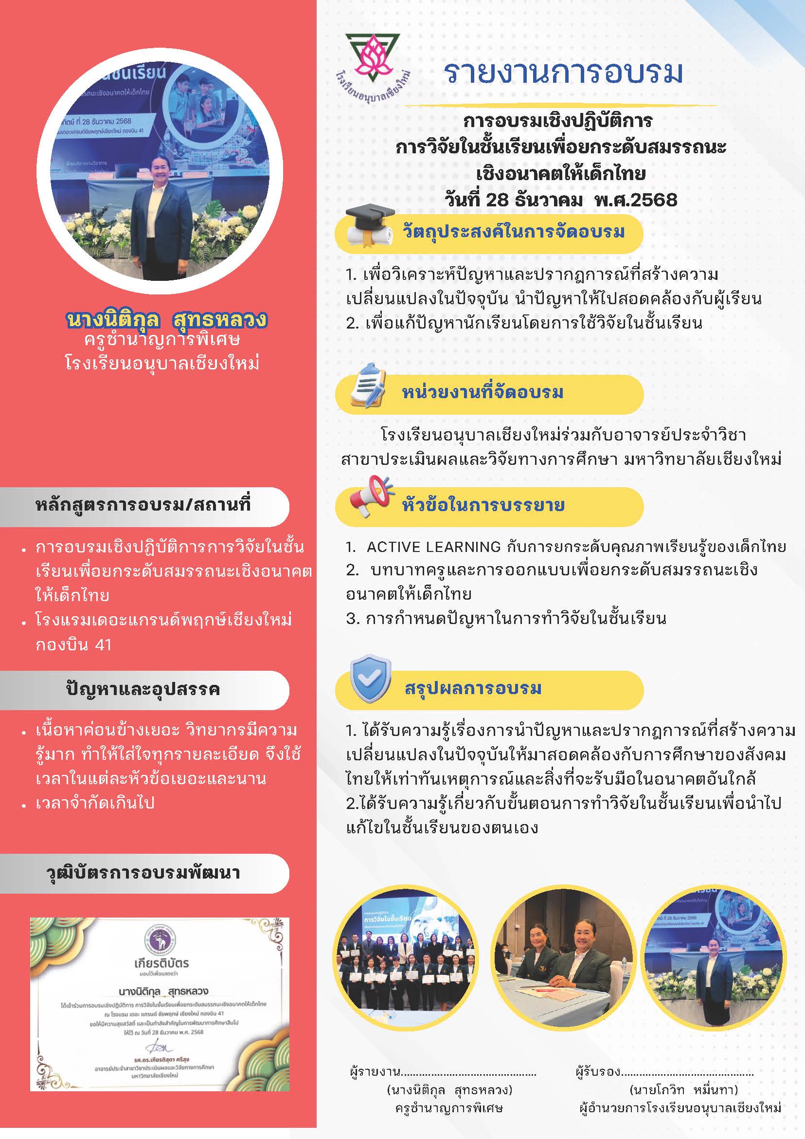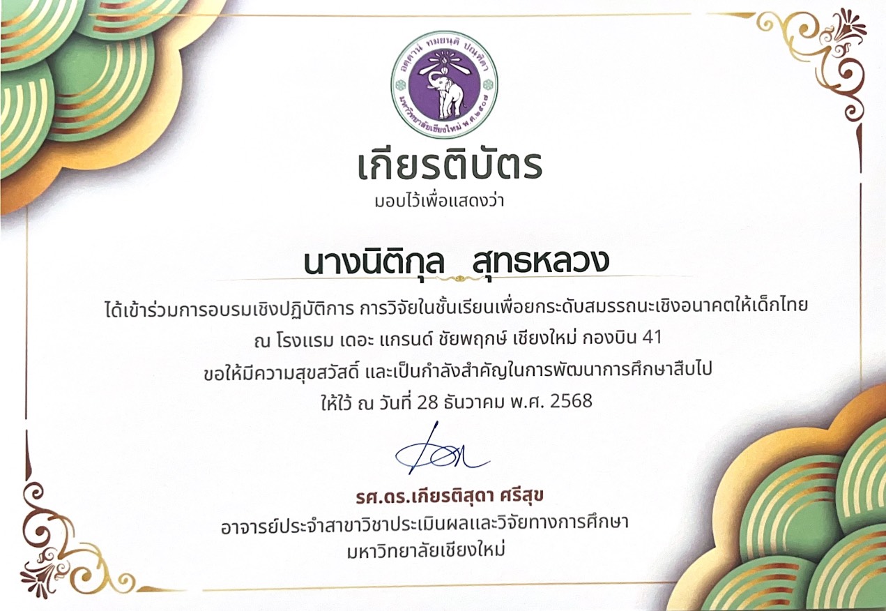 การอบรมเชิงปฏิบัติการการวิจัยในชั้นเรียนเพื่อยกระดับสมรรถนะเชิงอนาคตให้เด็กไทย