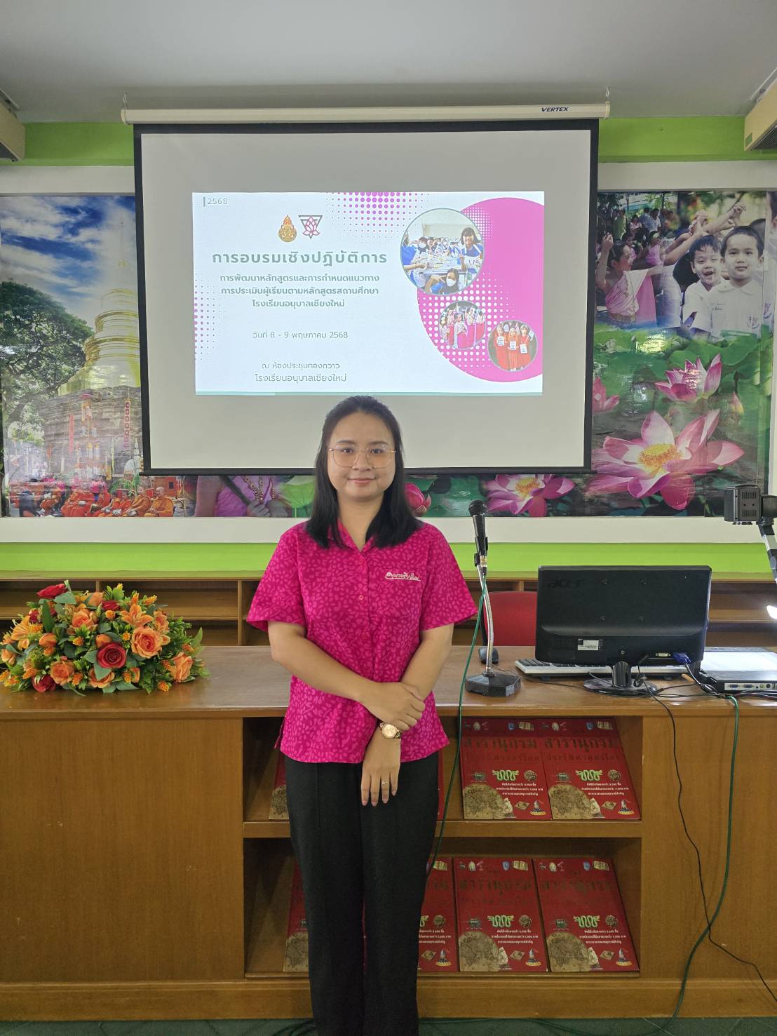 - ข้าพเจ้าได้เข้าร่วมการอบรมเชิงปฏิบัติการการพัฒนาหลักสูตรเเละกำหนดแนวทางการประเมินผู้เรียนตามหลักสูตรสถานศึกษา โรงเรียนอนุบาลเชียงใหม่ เพื่อให้สอดคล้องกับโครงสร้างหลักสูตรสถานศึกษาในแต่ละปีการศึกษาและบริบทของสถานศึกษา