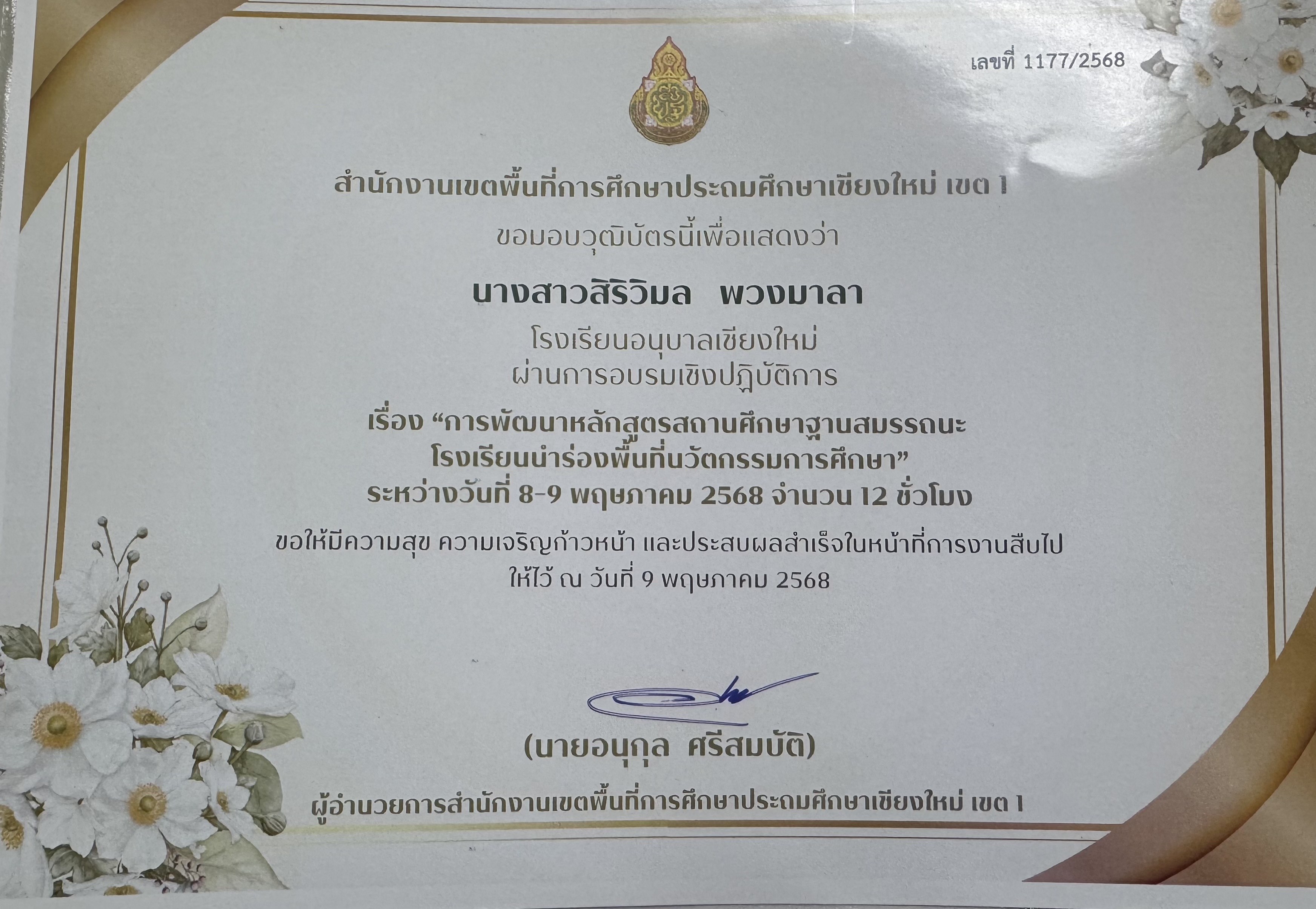 ข้าพเจ้าได้มีส่วนร่วมในการปรับปรุงและพัฒนาหลักสูตร โดยได้ร่วมกันวางแผนการปรับปรุงและพัฒนาหลักสูตรปีการศึกษา 2568 ด้วยการเข้ารับการอบรมการพัฒนาหลักสูตรสถานศึกษาฐานสมรรถนะของโรเรียนนำร่องในพื้นที่นวัตกรรมจังหวัดเชียงใหม่